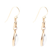 Experience the alluring elegance of our Black Mother of Pearl and Golden Bronze Drop Earrings. Made from genuine black mother of pearl, quartz, and golden bronze, these hand-crafted earrings feature a clear faceted quartz overlay for added brilliance. With a weight of 2 grams, a length of 1.5" and a width of .3", these earrings are the perfect addition to any outfit. Embrace the stunning combination of black and gold and add these earrings to your collection today!