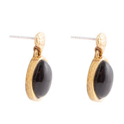 Introducing our stunning Black Onyx Hammered Post Drop Golden Earrings, designed for the bold and fashion-forward. These earrings feature an oval onyx stone set in a gorgeous bronze bezel, hanging .75 inches from a sterling silver post. Weighing 1.5 grams each and with a .25 inch width, these handcrafted earrings are the perfect statement piece for any occasion. Elevate your style and channel your inner confidence with these golden beauties!
