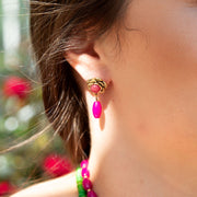 Blooming Pink Agate Post Golden Earrings