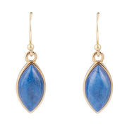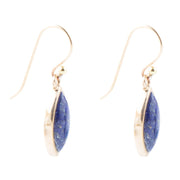 These exquisite earrings bring elegance and sophistication to any ensemble. Crafted with genuine lapis and bronze, each marquise-shaped stone hangs 1.15" from earwire and are .4" at widest point.