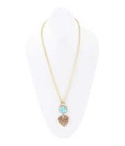Get ready to be amazed by the stunning Blue Turquoise Flower Golden Necklace. Handcrafted with care, this necklace features vibrant blue turquoise and a beautiful flower-shaped stone, accented with golden bronze details. Measuring 23.5" in length and a hanging pendant measures 12.75" at its widest point, this necklace is both elegant and eye-catching. With a total weight of 43.9g, it's the perfect accessory to add to your collection. Don't miss out on this unique piece that is sure to enhance any outfit and make you feel confident and beautiful.