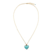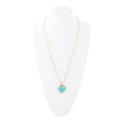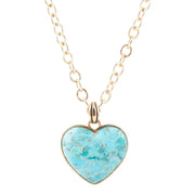 Wear your heart on your sleeve with this one-of-a-kind handcrafted Turquoise Heart Pendant Necklace. This beautiful necklace features a genuine turquoise heart-shaped pendant on a bronze chain, with genuine turquoise set in a high polish bronze bezel. Necklace is adjustable up to 32" in length, with the pendant measuring 1.25" in width and 1.0" in height. Total weight with chain is 38.3 grams. Love it forever!