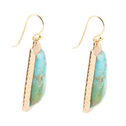 Experience the vibrant beauty of these Golden Earrings, featuring a genuine Turquoise stone wrapped in luxurious bronze. With a total weight of 14.7g, these earrings are 1.5" long and their widest point is 0.75", making them a stunning and versatile addition to any jewelry collection. Feel the power and allure of these statement earrings as they enhance your style and captivate the senses