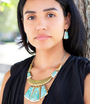 Experience the vibrant beauty of these Golden Necklaces, featuring genuine Blue Turquoise stones wrapped in luxurious bronze. With a total weight of 4.15oz, these necklaces are 17.5" long plus a 2" chain extender and the pendants measure 2" long, widest point is 1.60", making them a stunning and versatile addition to any jewelry collection. Feel the power and allure of these statement necklaces as they enhance your style and captivate the senses