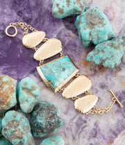 Blue Turquoise Jeweled Statement Link Golden Bracelet