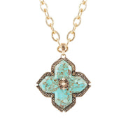 This Turquoise Maltese Cross Pendant will look stunning with its genuine turquoise stone and bronze finish coming together in a timeless and regal style. The chain is adjustable up to 31" for the perfect fit and is finished with a lobster clasp closure for your convenience. Crafted and finished by hand for a unique, luxurious feel, this special pendant is sure to be a treasured addition to any collection! 💎 💍