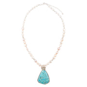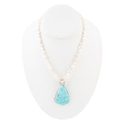 Blue Turquoise Pendant and White Pearl Sterling Silver Necklace