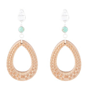 Blue Turquoise Top Carved Wood Sterling Silver Earrings