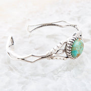 This Dainty Turquoise Cuff Bracelet is perfect for making a subtle yet eye-catching statement. Crafted from genuine turquoise and sterling silver, this beautiful bracelet features a solid circle of turquoise that is 2/3" in diameter. It is designed to fit most wrists with a 2.5" inner diameter and is the perfect accessory for any outfit.