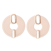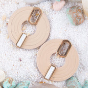 Genuine mother of pearl is delicately placed in a bronze bezel and paired with soft leather. The sterling silver post adds a touch of sophistication, while the handcrafted design ensures quality and uniqueness. Feel confident and beautiful in these white, brown, and gold earrings that weigh only 6.1 grams. Elevate any outfit effortlessly with these 1.5" long and wide statement earrings.
