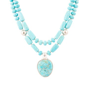 Double Stranded Blue Turquoise Sterling Silver Statement Pendant Necklace