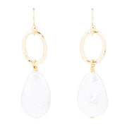 Drops of White Freshwater Pearl Golden Drop Earrings