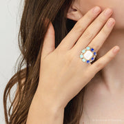 Dual Color Blue Lapis Turquoise and White Mother of Pearl Golden Ring