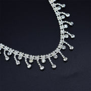 Fashionable And Elegant Women's Silver Tassel Glass Rhinestone Collarbone Chain