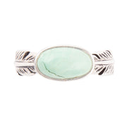 Make a bold fashion statement with this exquisite handcrafted Feather Ring. Featuring genuine green turquoise and sterling silver, this stunning ring is designed with two elegant feathers cascading from its .25" x .5" green turquoise stone. In addition, the .16 oz ring is lightweight and comfortable to wear. Show off your unique style with this beautiful Green Turquoise Ring!