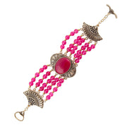 Flamenco Pink Magenta Agate Golden Statement Bracelet