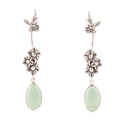 Floral Linear Drop Green Turquoise and Sterling Silver Earrings