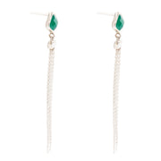 This Fringed Green Onyx Earring is handmade with genuine faceted green onyx and sterling silver. The elegant sterling chain fringe hangs 3.25" from sterling silver post top, creating a beautiful dangle that's perfect for any ensemble. Experience the beauty and luxury of semi-precious stones today!