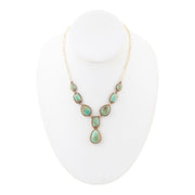 Genuine Blue Turquoise Roped Golden Bronze Y Necklace