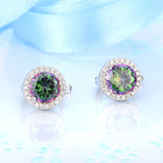 Genuine Mystical Rainbow Topaz Halo Earrings with Omega Backings