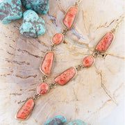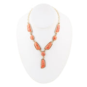 Genuine Orange Sponge Coral Golden Abstract Statement Necklace