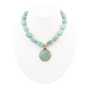 Green Amazonite Golden Lotus Pendant Necklace