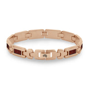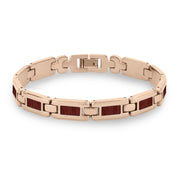 Men's Rose Gold plated stainless steel link bracelet with Australian Jarrah wood inlays. Links are removable to adjust for size.