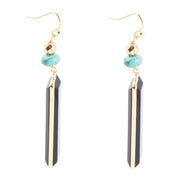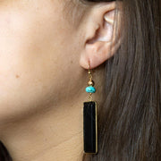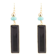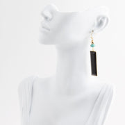 Experience the ultimate in elegance and style with these stunning Jett Black Onyx Linear Golden Drop Earrings. Crafted and finished by hand, these earrings feature a beautiful magnesite circled stone and a sleek black onyx rectangular stone. Measuring 2.75" in length and .5" at its widest point, these earrings are the perfect accessory for any occasion. Indulge in the luxurious weight of 16.8g and elevate your look with these exquisite earrings.