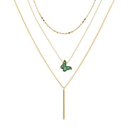 Layer Necklace with Druzy Stone Butterfly Pendant