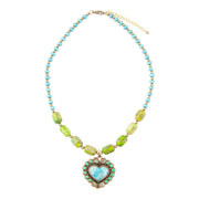Legacy Heart Lime Green and Blue Turquoise Golden Pendant Necklace