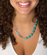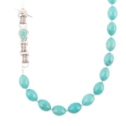 Adorn yourself with the natural beauty of genuine turquoise and sterling silver in this Linked Sterling Blue Turquoise Nugget Necklace. The toggle front closure adds convenience and style, while the 20" length offers versatility for any outfit. Elevate your look with this exquisite necklace.