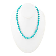 Hand-crafted and adorned with genuine blue turquoise beads, this Love Knots necklace measures 17.5" long with a 2" chian extender for the perfect fit. The lobster clasp adds a touch of convenience and the widest point of the necklace is 0.25", giving it a total weight of 29.5g. Every detail is carefully crafted and finished by hand, ensuring a truly unique and beautiful piece.