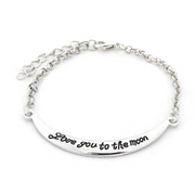 The centerpiece of the bracelet is a charm that is inscribed with the phrase "Love You to the Moon ," a sentiment that is sure to touch the heart of anyone who receives it. The charm is also adorned with sparkling cubic zirconia stones that add a touch of glamour and sophistication to the bracelet.