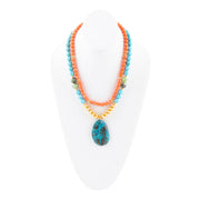 Mandy Orange and Blue Jasper Pendant Statement Necklace