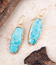 Odyssey Long Blue Turquoise and Golden Statement Earrings