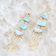 Ohana Blue Larimar Golden Chandelier Drop Earrings