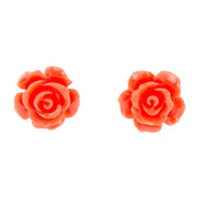 Indulge in these exquisite Orange Coral Rose Post Stud Earrings, crafted and finished by hand. The intricate design, made out of resin, boasts a length and width of .4" and a weight of 1.4 grams. Let the vibrant hue of orange captivate your senses and add a touch of elegance to any outfit.