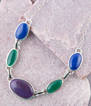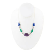 This stunning peacock purple agate multistone necklace is sure to make heads turn! Crafted from genuine purple agate, lapis, green onyx and sterling silver, it's adjustable from 18" to 20" with a 2" extender chain, and weighs 35.6 grams. Add some glitz and glam to your look! 💎 💗