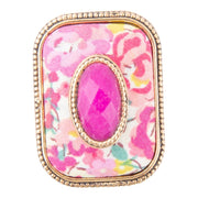 Pink Agate Stacked Stone Floral Golden Statement Ring