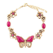 Pink Fuchsia Agate Golden Butterflies Adjustable Bracelet