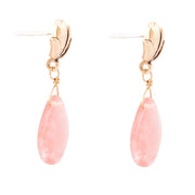 Indulge in the vibrant energy of these Pink Quartz Golden Lotus Drop Earrings, handcrafted with a stunning genuine pink quartz stone in a tear drop shape and adorned with a beautiful golden bronze lotus flower design. Measuring 1.25" long and 0.5" wide at its widest point, these earrings weigh a total of 4.35g, making them a delicate and elegant addition to your jewelry collection. Let these earrings be a reminder of the natural beauty and spirituality they represent.