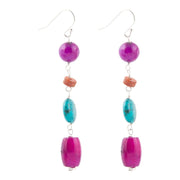 Indulge in the stunning artistry of these Prescott Blue Magnesite Sterling Silver Drop Earrings, adorned with genuine Purple Amethyst, Orange Jasper, Blue Magnesite and Pink Agate stones. Handcrafted and finished, these earrings measure 3" in length with a widest point of .5", and have a total weight of 11.8g. Elevate your style with these exquisite pieces!