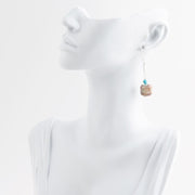 These exquisite earrings feature purple agate stones delicately suspended from a handcrafted sterling silver fish hook ear wire. The addition of blue magnesite beads and silver rectangles add a touch of sophistication to this design. Each earring weighs 5 grams and measures .5 inches in width at their widest point, with a length of 2 inches from the sterling silver fish hook ear wire. Handcrafted and meticulously finished, these earrings are a true work of art.