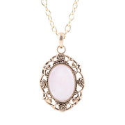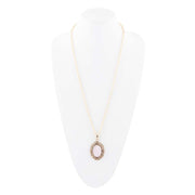 Discover the beauty of the Rosie Pink Opal Pendant Necklace! Handcrafted with a genuine pink opal in a bronze bezel, its golden bronze chain is adjustable up to 32". Weighing at 1.58 oz, the pendant hangs 2.25" from a bale and is 1.4" in width. Embrace the charming colors of pink and gold and add a touch of elegance to any outfit.