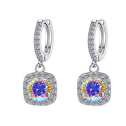S925 Colorful Moissanite Halo Earrings with Pavé-Set Halo & Hoop, VVS1 Certified, 12 Vibrant Colors , Sterling Silver
