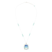 Experience the beauty and elegance of our Scenic Beach Blue Larimar Sterling Silver Necklace. These stunning earrings feature a gorgeous beach picture captured within clear glass and expertly crafted by hand. The sterling silver adds a touch of luxury, while the pendant measure 2.5" in length and .1.25" at its widest point. With a total weight of 27.7g, these necklaces are the perfect statement piece for any occasion.