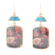 Scenic Dark Florals Blue Apatite Golden Drop Earrings