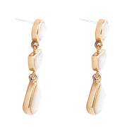 Add a touch of elegance to your outfit with our Shaped Mother of Pearl Earrings. Featuring three genuine mother of pearl stones set in high polish bronze bezels, each earring hangs 1.3" from a sterling silver post. Crafted and finished by hand, these drop earrings are .5" at their widest point and weigh a lightweight .16 oz. Available in white and gold for a sophisticated look.