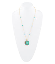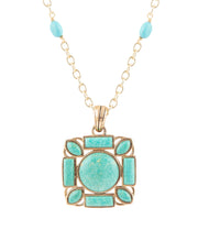 Elevate your style with our Squared Up Green Turquoise Pendant Necklace! Crafted by hand, this unique piece features genuine green turquoise stones in high polish bronze bezels, complete with a golden bronze chain. Adjustable up to 29", this 1.3" pendant adds a touch of elegance and weighs only 29 grams.