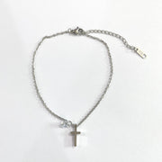 The centerpiece of the anklet is a small cross charm, which is embellished with sparkling crystals that catch the light and add a touch of elegance to the design. The cross symbolizes faith and spirituality, making it a meaningful and personal accessory for those who wear it.